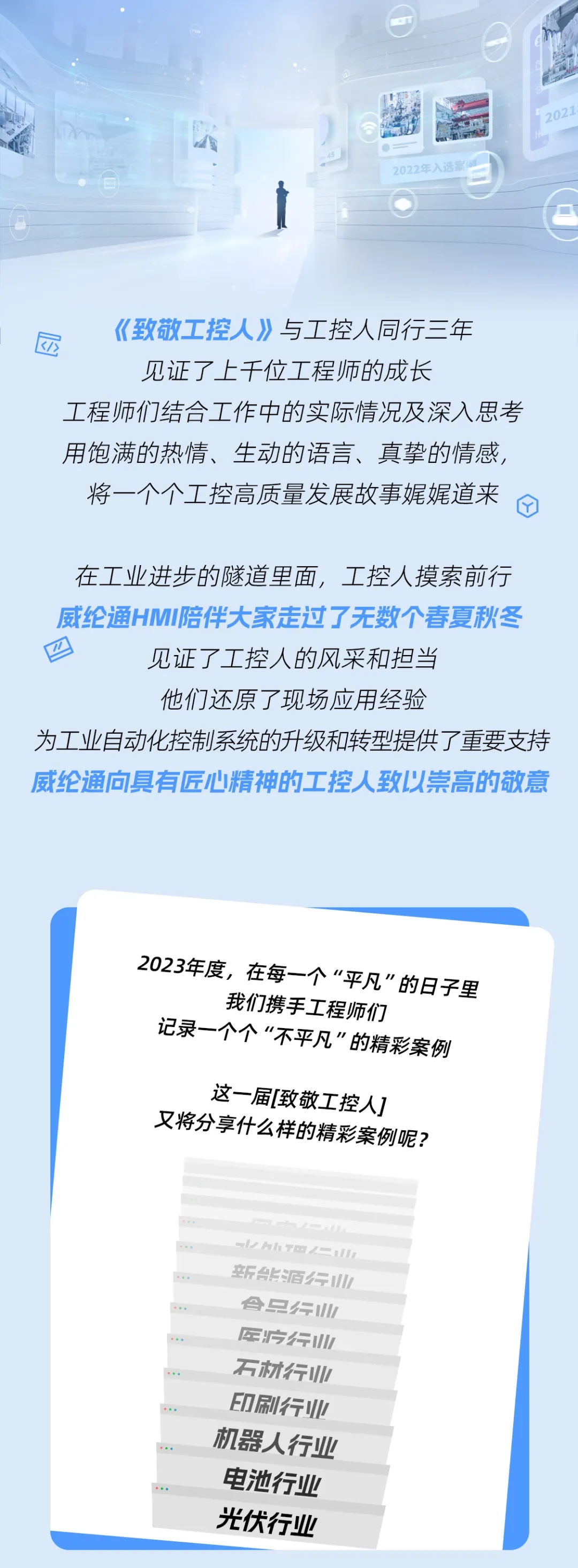 很多東西是需要時間才能建立的,用心打好基礎,一切該來的都會來。祝愿“致敬工控人”越辦越好,祝愿威綸通發(fā)展壯大,更上一層樓。